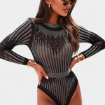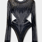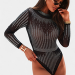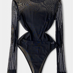 Antonella Body de Malla Transparente con Mangas Largas y Brillos