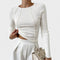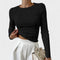 Esta blusa negra de manga larga redefine la elegancia moderna. Con un corte ajustado y detalles de costura visibles, se convierte en la prenda perfecta para looks minimalistas que transmiten estilo y seguridad. Ideal para combinar con faldas, pantalones o shorts de tiro alto.