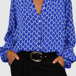 Casual con un toque de encanto, la Blusa Jemima aporta facilidad cotidiana a tu guardarropa. Diseñada con un favorecedor escote en V, mangas largas y un ajuste relajado, presenta un sutil estampado geométrico y detalles de botones que elevan el look. Ideal para superponer a lo largo de las estaciones, desde las frescas mañanas de primavera hasta los acogedores días de otoño.