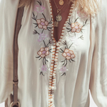 Fluida y sin esfuerzo chic, esta blusa de inspiración étnica presenta delicados bordados florales y un ajuste suelto y fresco. Hecha de 100% rayón, es ultraligera y perfecta para días de playa o salidas casuales de verano.