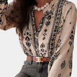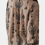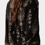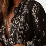 Respira vibras bohemias sin esfuerzo con la Blusa Wild Sage – confeccionada en poliéster reciclado con impresiones intrincadas, es la pieza perfecta para aventuras relajadas y momentos llenos de alma.
