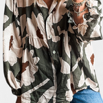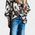 Ligera, suelta y con un encanto sutilmente bohemio. La blusa Filomena destaca por su silueta relajada, mangas abullonadas que añaden volumen y un estampado floral abstracto inspirado en tréboles de cuatro hojas. Ideal para aportar color y frescura a tu look diario sin renunciar a la comodidad.