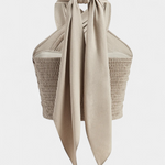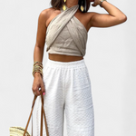 Refinado y llamativo, el top Lena redefine el verano con su escote cruzado halter, espalda fruncida y lazo largo. Perfecto para combinar con pantalones de tiro alto o faldas vaporosas, este top aporta un aire sofisticado sin perder frescura y ligereza.