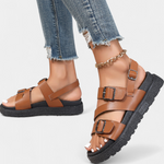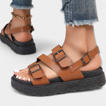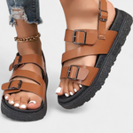 Renée Sandalias Planas de Cuero Vegano con Correas Ajustables