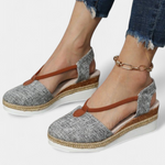 Eunate Sandalias Cerradas con Cuña de Efecto Yute y Detalle Natural