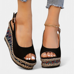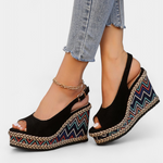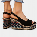 Dionisia Sandalias de Cuña con Tejido Étnico y Correas de Ante