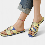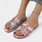 Berenice Sandalias Planas Multicolores con Estampado Tropical