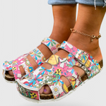 - Parte superior con correas y hebilla que añade un toque moderno y ajustabilidad