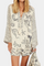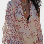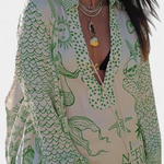 • Camisa fluida con escote en V, cordones y estampado artístico
