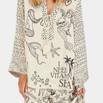 Estilo bohemio con espíritu libre. El conjunto Amalia fusiona una camisa holgada con estampado de inspiración marina y unos pantalones cortos con cintura elástica, creando un look veraniego relajado y con personalidad. Ideal para quienes buscan comodidad sin perder autenticidad visual.