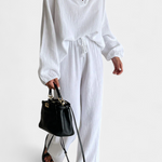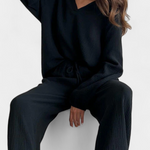 Relajado, fresco y con un toque moderno, el conjunto Aya combina un escote en V favorecedor con una textura acanalada y una silueta desenfadada. Ideal para días cálidos y planes informales, te ofrece estilo sin esfuerzo y comodidad durante todo el día.