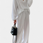 - Pantalones de pierna ancha con cintura ajustable para máxima libertad