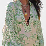 - Impresión vibrante de plantas y flores que añade un encanto audaz y juguetón
