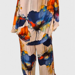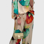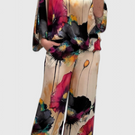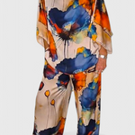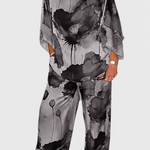 Una mezcla ligera de sofisticación y comodidad—Karoline está diseñada para moverse contigo en cada momento. Con una parte superior de ajuste relajado y escote redondo, y pantalones de pierna ancha, este conjunto con sensación de satén favorece a todas las figuras mientras ofrece comodidad ligera y transpirable. El estampado floral en toda la prenda añade un toque fresco y elegante, perfecto tanto para la elegancia diurna como para las noches relajadas.