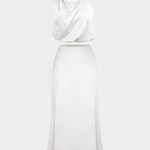 - El top drapeado con cuello halter añade un aire refinado y escultural