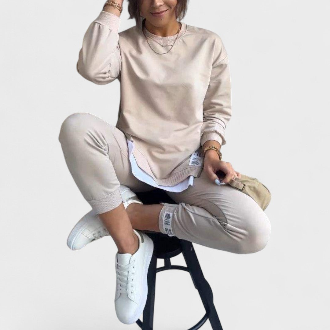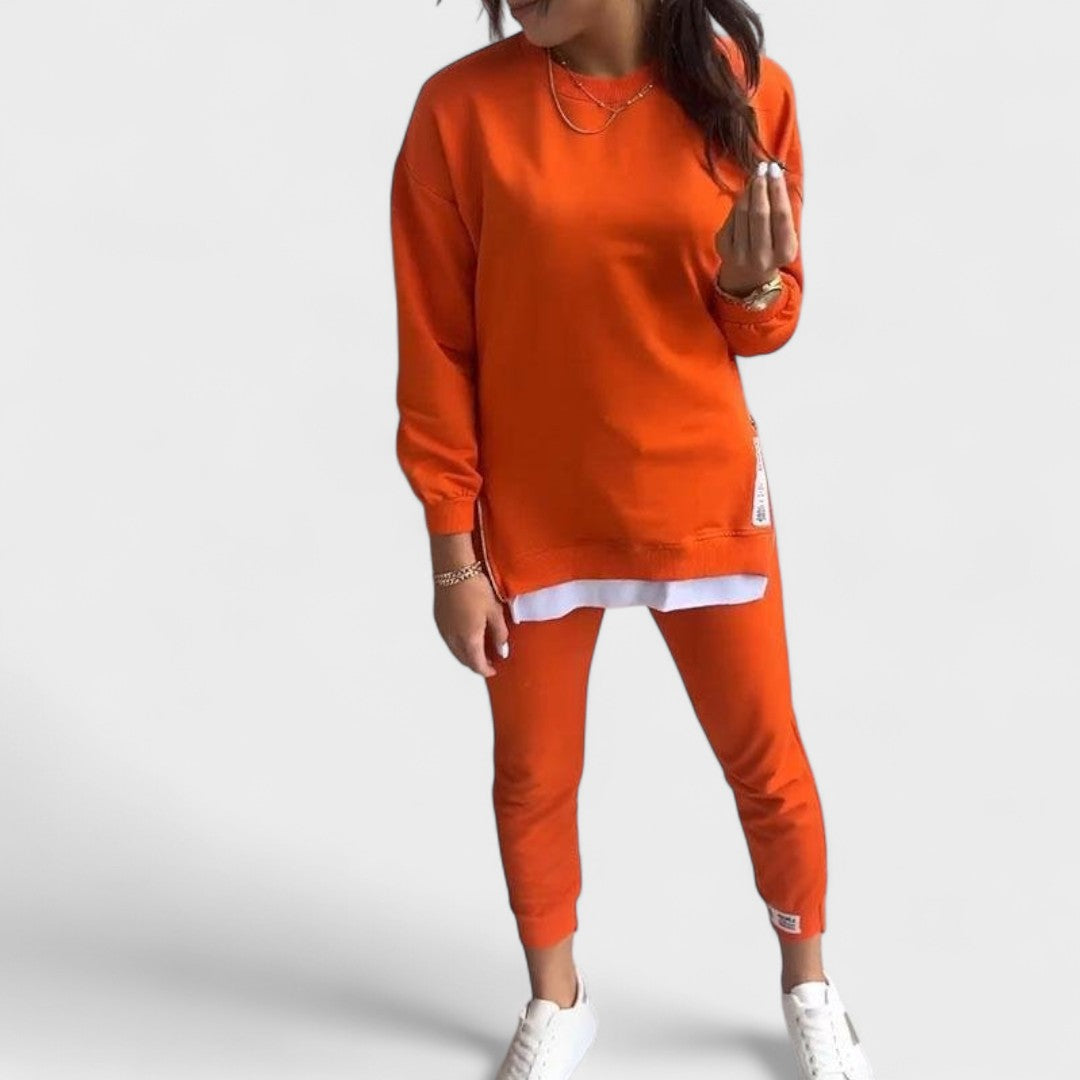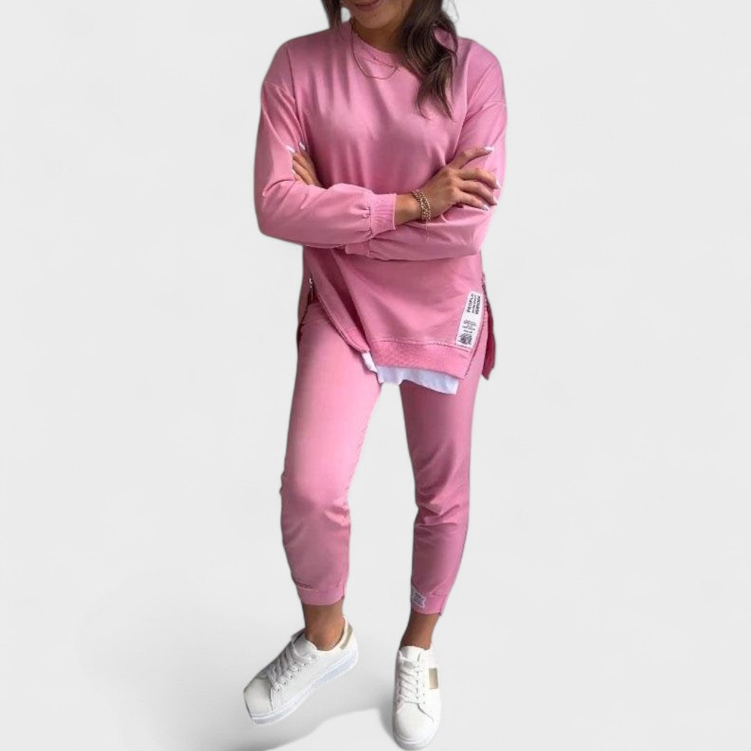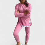 Este conjunto deportivo gris combina a la perfección el confort y la moda. Con un diseño relajado y moderno, es ideal tanto para estar en casa como para salir con un estilo casual y desenfadado.
