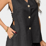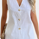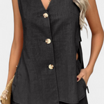 • Camisa sin mangas con escote en V y botones para un look estructurado y limpio