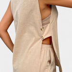 Loren Conjunto de Lino Sin Mangas de Estilo Relajado