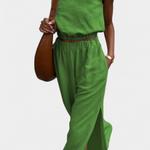 - Diseño sin mangas y pantalón de pierna ancha para un look pulido y relajado