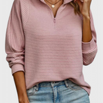 Helene Jersey de Cuello en V con Cremallera y Manga Larga
