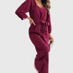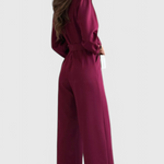 Pulido pero desenfadado, el Mono Ariane redefine la vestimenta de una sola pieza con elegancia moderna. Con un escote en V favorecedor, una silueta fluida de pierna ancha y mangas largas, está diseñado para la comodidad sin comprometer el estilo. La cintura con lazo te permite moldear el ajuste para realzar la figura, convirtiéndolo en una opción versátil para todo, desde brunchs relajados hasta eventos nocturnos.