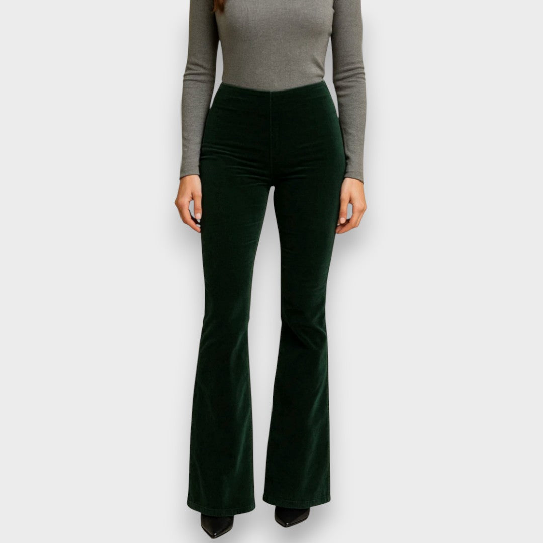 Un pantalón de terciopelo pensado para realzar tu estilo con un toque elegante y moderno. Su corte acampanado y talle alto estilizan la figura, ofreciendo una combinación perfecta de comodidad y distinción.