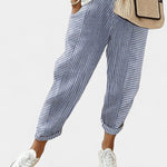Alba Pantalones de Mezcla de Lino a Rayas