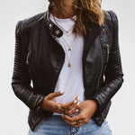 La chaqueta biker de cuero negro es un clásico atemporal que transforma cualquier look. Su diseño moderno con detalles metálicos y acabado impecable aporta fuerza, personalidad y un aire rebelde que nunca pasa de moda.