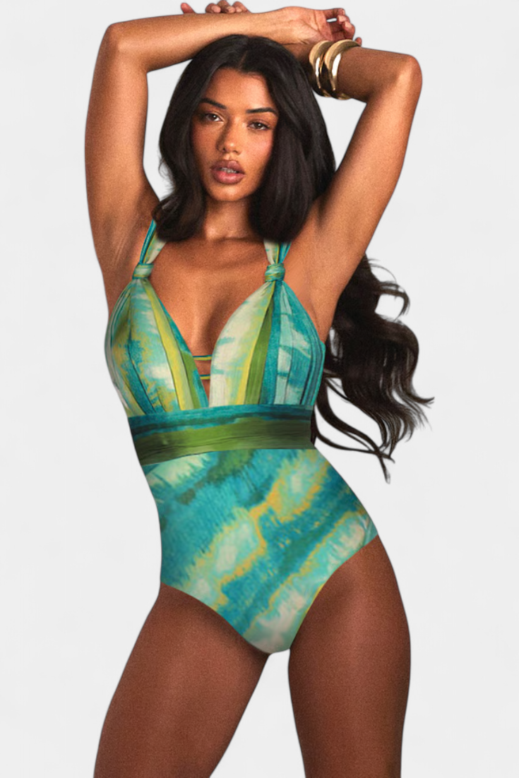 Ahria Bañador Entero Estampado con Escote en V y Cubresol