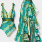 Refleja tu estilo con confianza en la playa o la piscina con el conjunto Ahria. Este set combina un bañador entero con escote en V y un vestido cubresol a juego, ideal para lucir elegante sin esfuerzo en los días de sol.