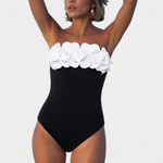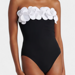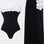 Sensual, romántico y lleno de encanto veraniego. El conjunto Ahria combina un bañador asimétrico con flores tridimensionales en relieve y una falda pareo envolvente a juego, creando un look que destaca por su delicadeza y originalidad.