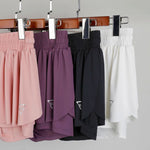 Excelentes rendimiento y comodidad: Estos shorts 2-en-1 combinan un short interior ajustado de material transpirable y de secado rápido con un diseño exterior moderno. El short interior garantiza que te mantengas fresca y seca durante los partidos intensos, mientras que la sensación sedosa facilita cada movimiento.