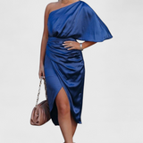 Sutil y refinado, el vestido Anais fusiona fluidez satinada con un estilo atemporal que se adapta con gracia a cualquier ocasión. Su tejido lujoso y su silueta favorecedora lo convierten en un imprescindible sofisticado para eventos de día o de noche.