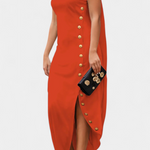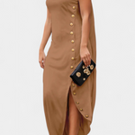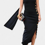 Aphrodite Vestido Asimétrico con Botones Dorados Decorativos