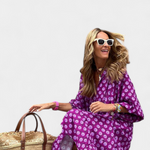 El vestido Aroa canaliza un espíritu libre con toques de elegancia bohemia. Su estampado floral artístico se mezcla con un corte amplio y fresco que abraza el cuerpo con ligereza. Ideal para quienes buscan estilo con carácter y comodidad para cualquier plan de verano.
