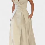 Sofisticado y versátil, el vestido Beverly combina la elegancia de un blazer clásico con la feminidad de una silueta en A. Con cuello estructurado, cierre de botones y longitud midi, este diseño sin mangas es perfecto tanto para entornos casuales como más pulidos. Los bolsillos funcionales y la cintura favorecedora completan su atractivo moderno.