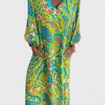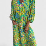 Carmina Vestido Maxi Bohemio con Escote en V y Estampado Abstracto