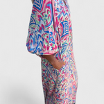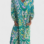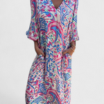 Llamativo, relajado y lleno de carácter—el vestido Carmina aporta una elegancia bohemia con su escote en V y su silueta fluida. Con un estampado abstracto y un corte cómodo, es ideal para quienes buscan estilo con libertad en cada paso.
