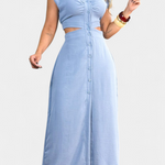 Griselda Vestido Midi con Botones y Cintura Abierta