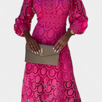 Lucinda Vestido Midi de Encaje con Mangas Farol y Cuello Alto