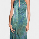 Inspirado en la paleta onírica de los jardines de Monet, el vestido Moana captura la belleza del impresionismo con cada detalle. Su caída ligera en chiffon premium, el cuello alto con abertura lágrima y la espalda cuadrada abierta evocan un romanticismo moderno. La bufanda separada añade un gesto de distinción, perfecto para ocasiones que merecen ser recordadas.