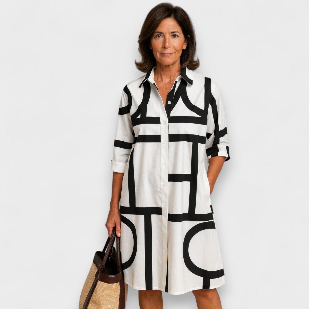 Un vestido camiseiro que une practicidad y elegancia. Su diseño actual ofrece frescura y comodidad, perfecto para acompañarte en diferentes momentos del día.