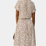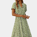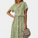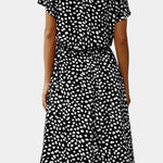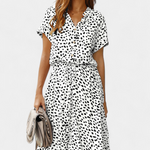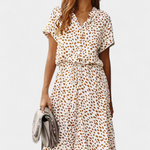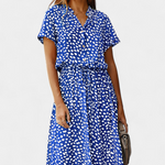 Rovena Vestido Midi de Lunares con Cuello Camisero y Cintura Ajustable