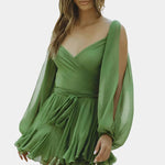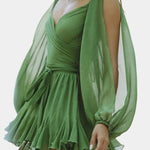 Skylar Vestido Mini con Escote en V y Mangas Ligeras