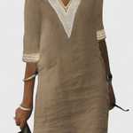 - Escote en V femenino y mangas 3/4 relajadas para una elegancia fresca