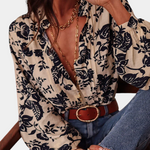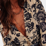 Canaliza tu musa bohemia interior con la Camisa Floral Noa, una mezcla perfecta de encanto vintage y elegancia sin esfuerzo. Con un estampado floral en todo el diseño en un suave fondo beige, esta blusa aporta un toque de romance a tu vestuario diario.
