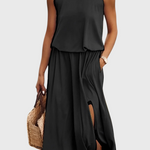 Dianne Vestido Sin Mangas con Abertura Lateral y Silueta Holgada