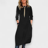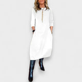 Un vestido pensado para destacar por su sencillez elegante. Su corte limpio y moderno lo convierte en una opción versátil para distintos momentos del día.