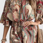 - El estampado boho aporta energía vibrante y un toque desenfadado