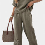 Natalia Conjunto Relajado de Lino Bordado con Silueta Holgada